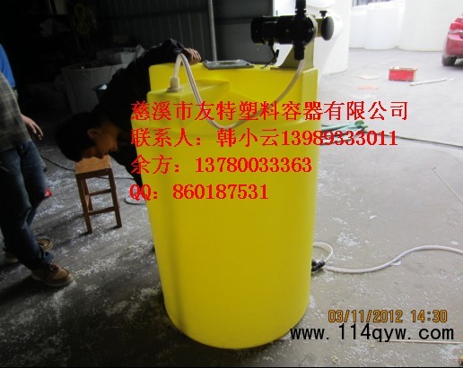 水處理業加藥、軟水系列,配套一次性成型滾塑容器加藥桶,加藥桶具有對食物無害的特殊聚乙烯制造而成,能防止絕大多數常見的化學物的侵蝕。無焊無縫、無毒無味、耐酸、耐堿、耐沖擊、耐高溫、耐冷凍,不滲漏、不易老化等等多個優點 。在水處理工程中加藥桶()耐酸堿容器主要用于各種藥劑的攪拌、溶解、儲存,再通過計量泵或水射器將藥液投加到各投加點。 加藥箱外形分為方形和圓形,上部預設了計量泵及攪拌機的安裝位置,攪拌機、加藥箱、計量泵三合一,使用非常方便。