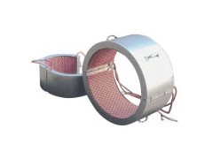 以履帶式加熱器做熱源,配以保溫材料及外殼,做成圍型對(duì)開(kāi)式加熱器,便于裝拆,適用于小型管道的局部加熱。最高工作溫度750℃。