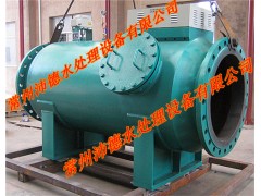 主要由優(yōu)質(zhì)碳鋼筒體、特殊結(jié)構(gòu)的不銹鋼濾網(wǎng)、水流導向閥及排污裝置所組成。當工作時,水流導向閥處于開啟狀態(tài),水流由入口進入過濾部分,經(jīng)過濾網(wǎng)過濾到出口。當過濾部分需要排污時,關(guān)閉水流導向閥,打開排污閥,水流經(jīng)濾網(wǎng)前半段過濾,部分水流由出口流入系統(tǒng),剩余水流由濾網(wǎng)后半段外側(cè)流入內(nèi)側(cè),經(jīng)排污口排出,起到反向自動沖洗濾網(wǎng)的作用。這樣整個沖洗過程系統(tǒng)可正常運行,無需停機。